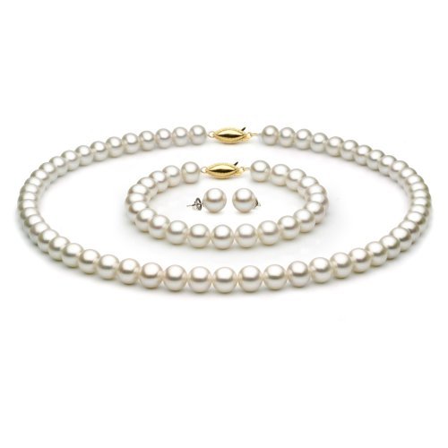 14k Yellow Gold 7-7.5mm White Freshwater Cultured Pearl Set AAA Quality, Set Includes Necklace, Bracelet, & Earrings Reviews